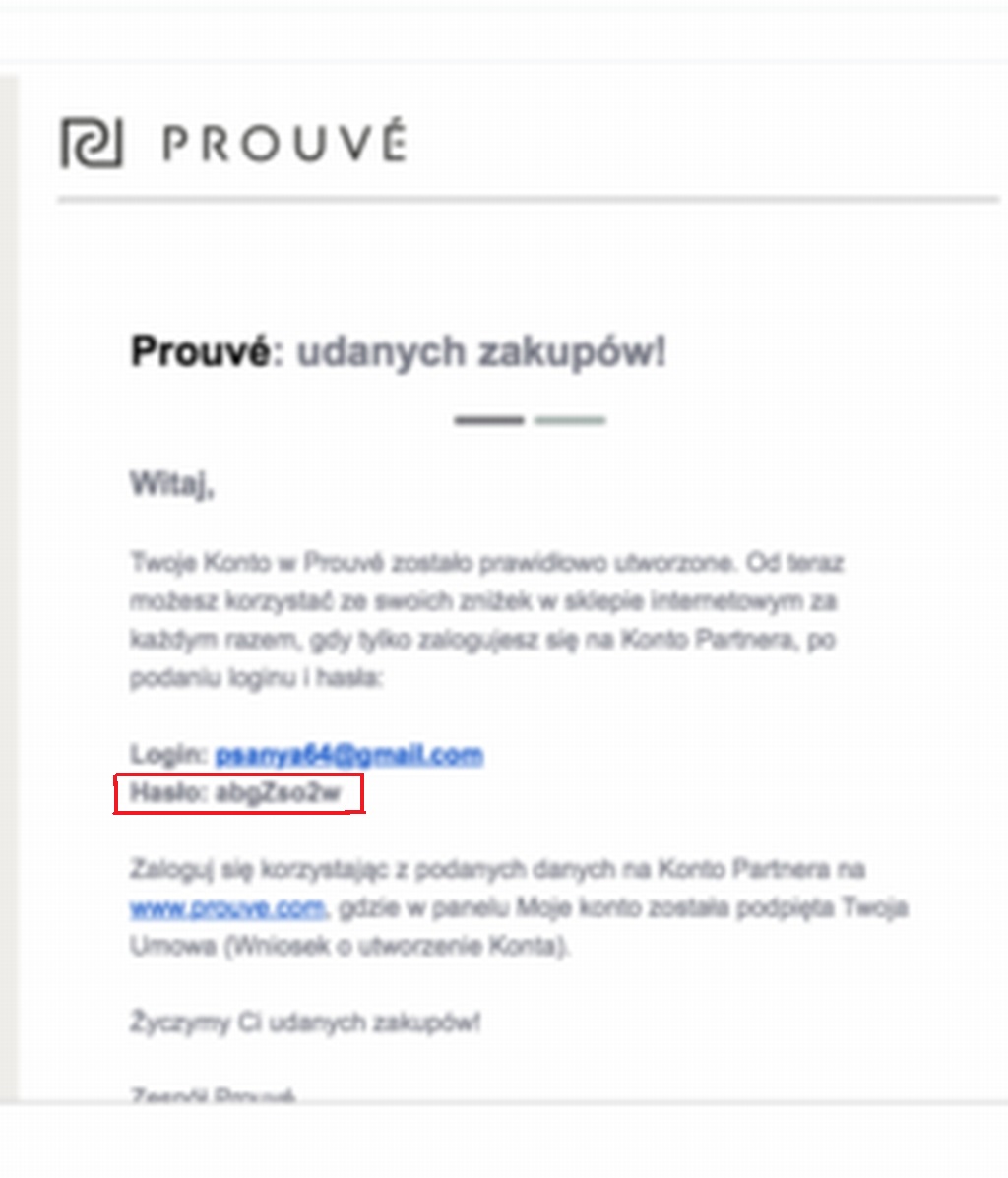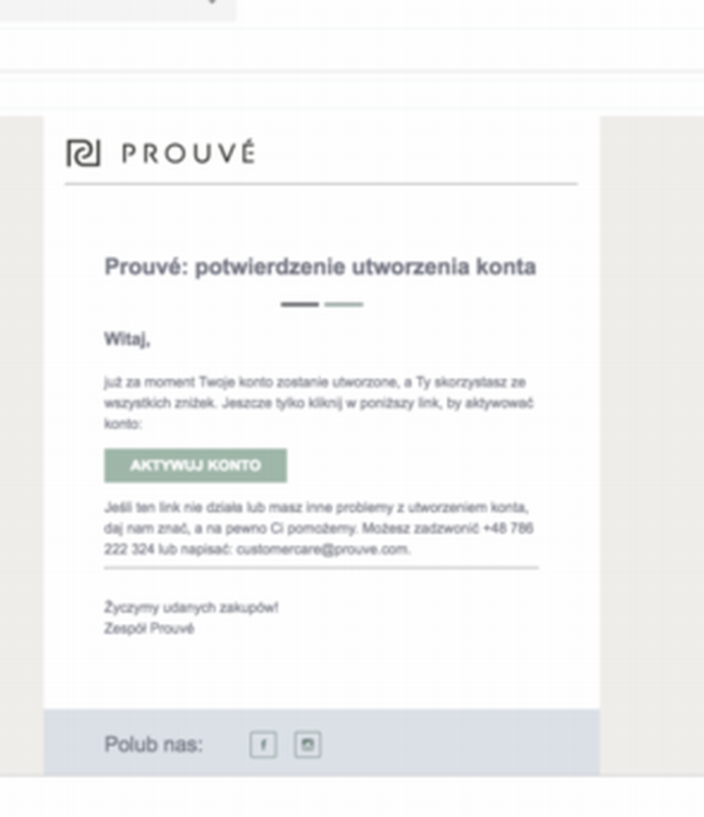 Ezután fogsz kapni egy emailt a Prouvé-től, ebben kattints a szürke AKTYWUJ KONTO aktiváló gombra